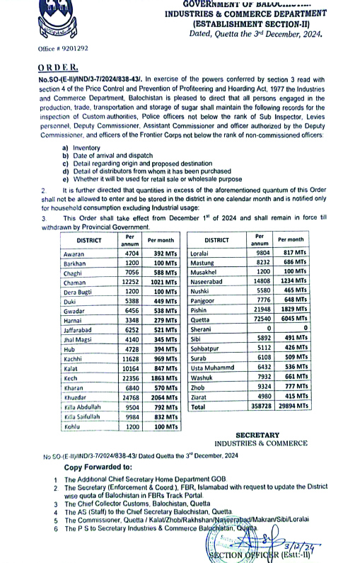 DISTRICT WISE SUGAR QUOTA